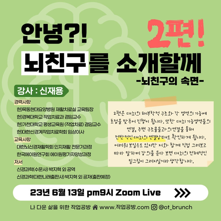 [작업공방 특강] 뇌덕후 신경과학 시리즈2 안녕?! 뇌친구를 소개할께(뇌친구의 속면)