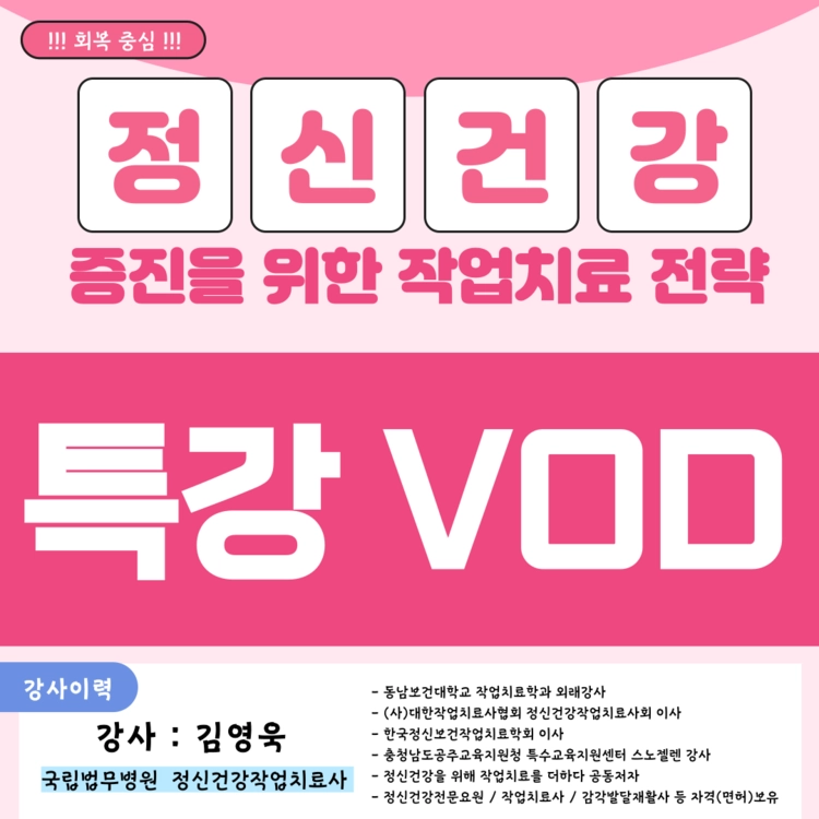 [전문가특강][정신건강시리즈] 정신건강 증진을 위한 작업치료 전략