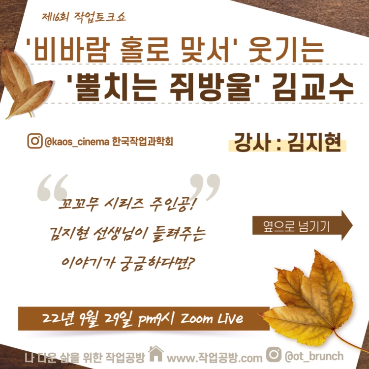 작업공방 핵심 가치와 딱 맞는 꼬꼬무 시리즈 강사 김지현 교수님의 삶의 이야기