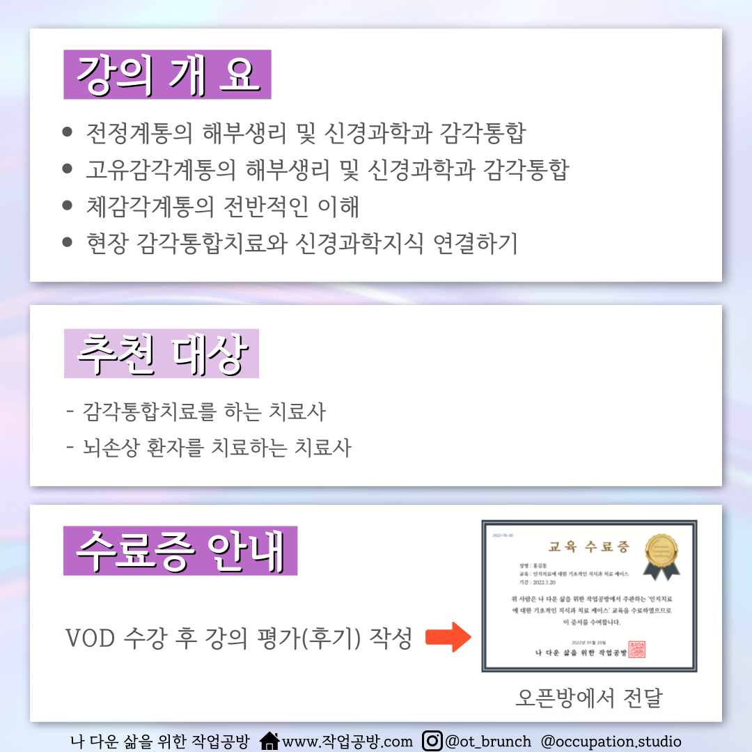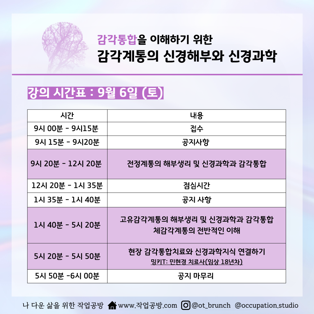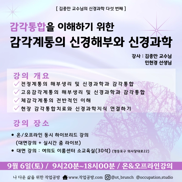 [작업공방 특강] 김종만 교수님의 감각통합을 이해하기 위한 감각계통의 신경해부와 신경과학+감각통합전문가(민현경 선생님) 강의