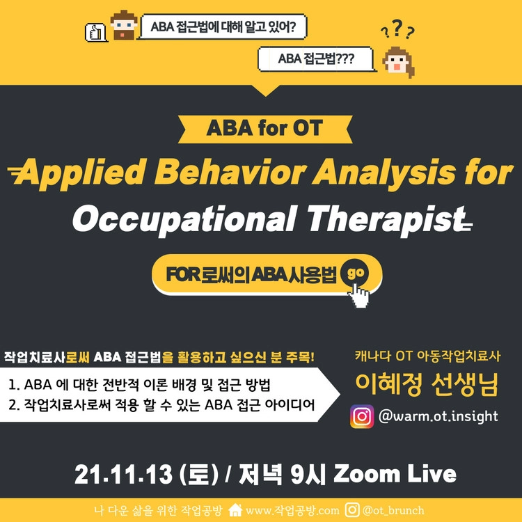 - 작업치료사로써 ABA 접근법을 활용하고 싶으신 분